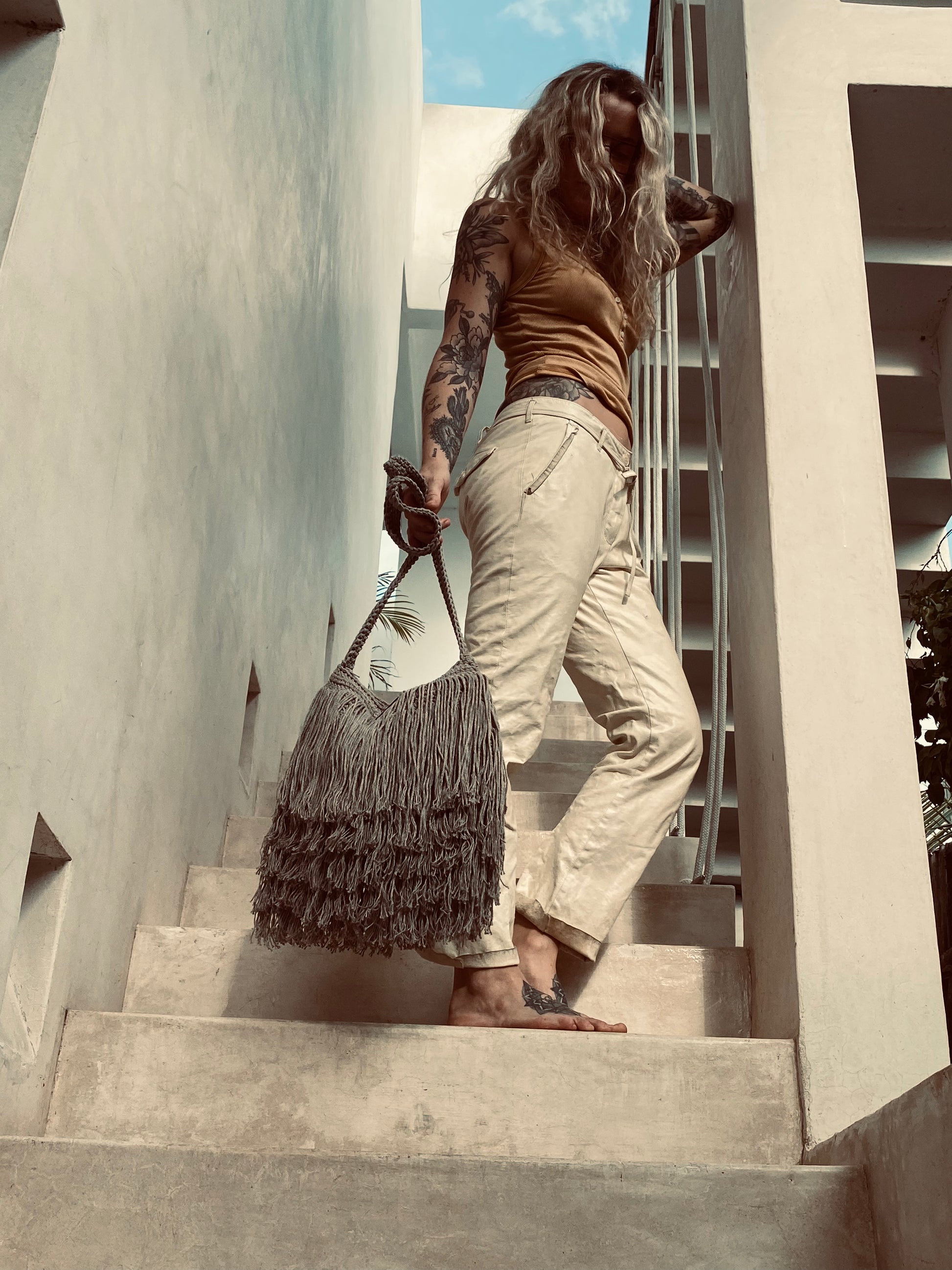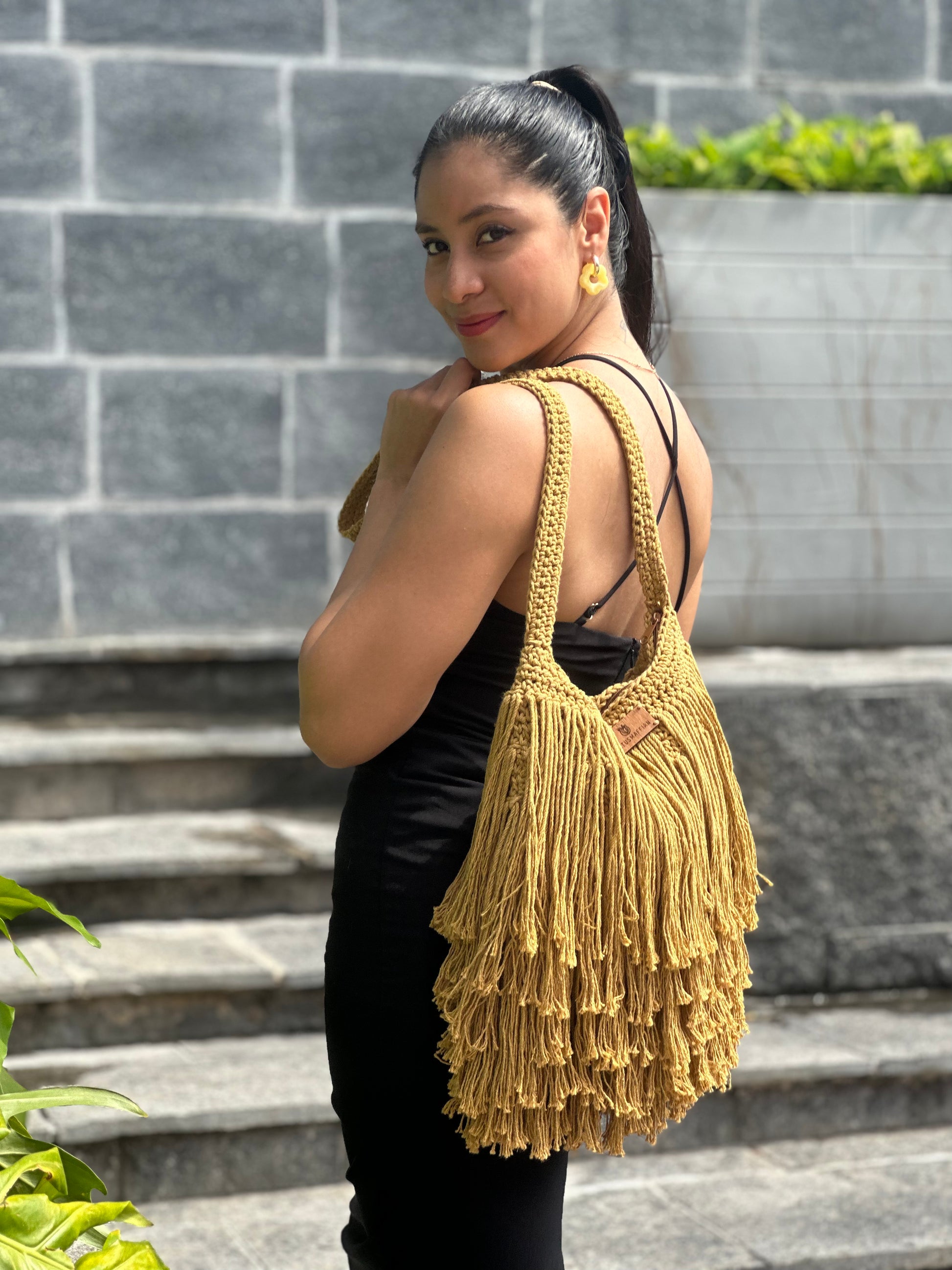 Un toque elegante del estilo setentero. Bolsa tejida a mano con flecos sofisticados y una silueta moderna — un clásico que eleva cualquier look con ese aire cool y effortless.