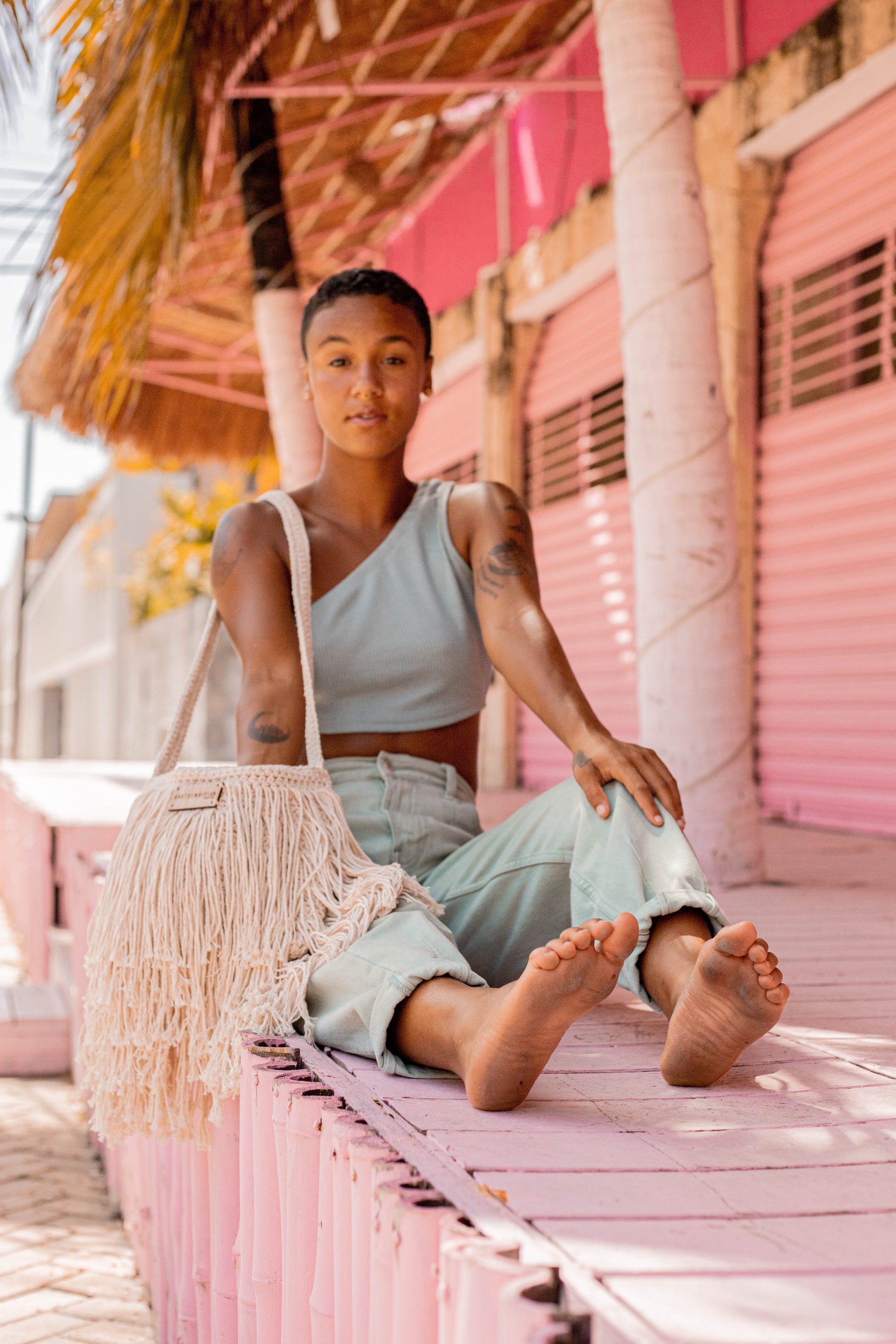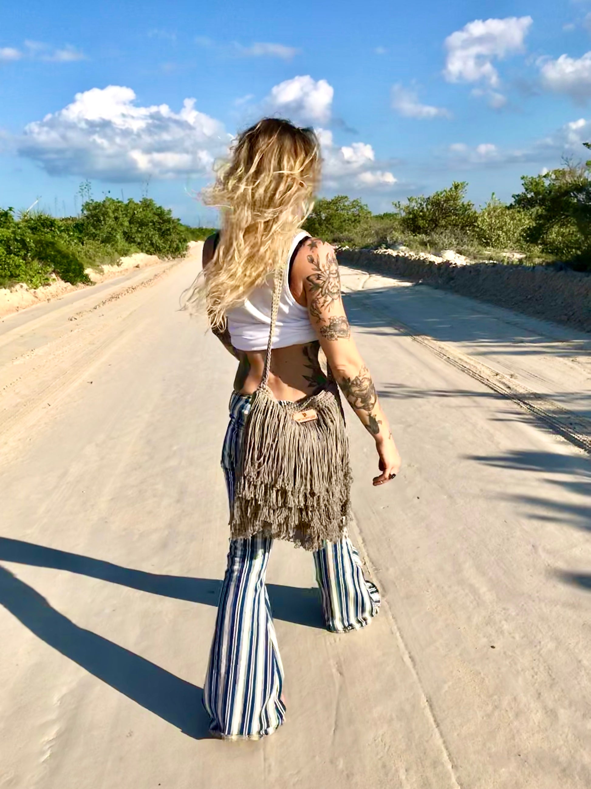 A refined take on 70s style. This handmade crochet bag features sleek fringe and a modern silhouette — a timeless piece that adds effortless cool to any look.