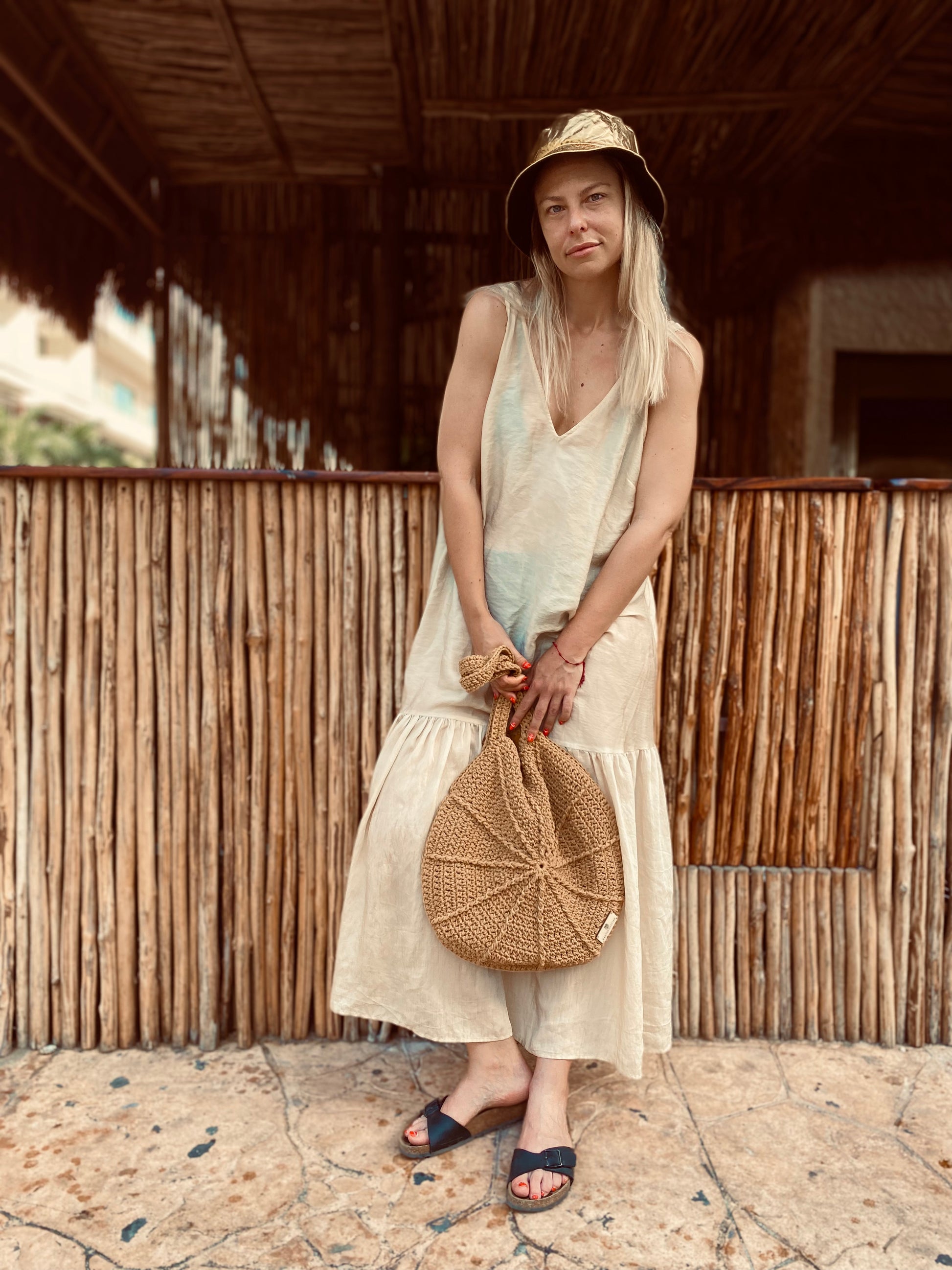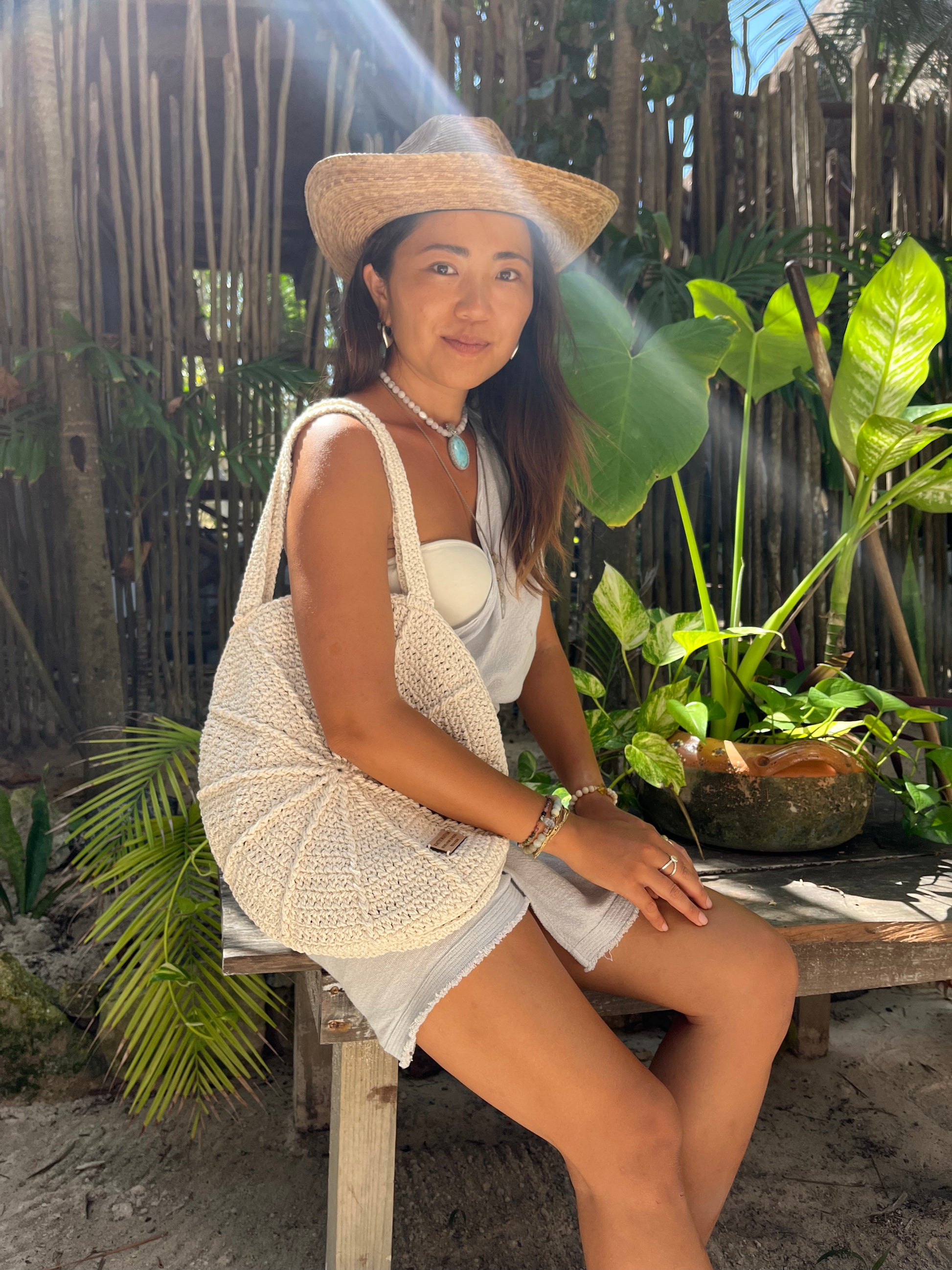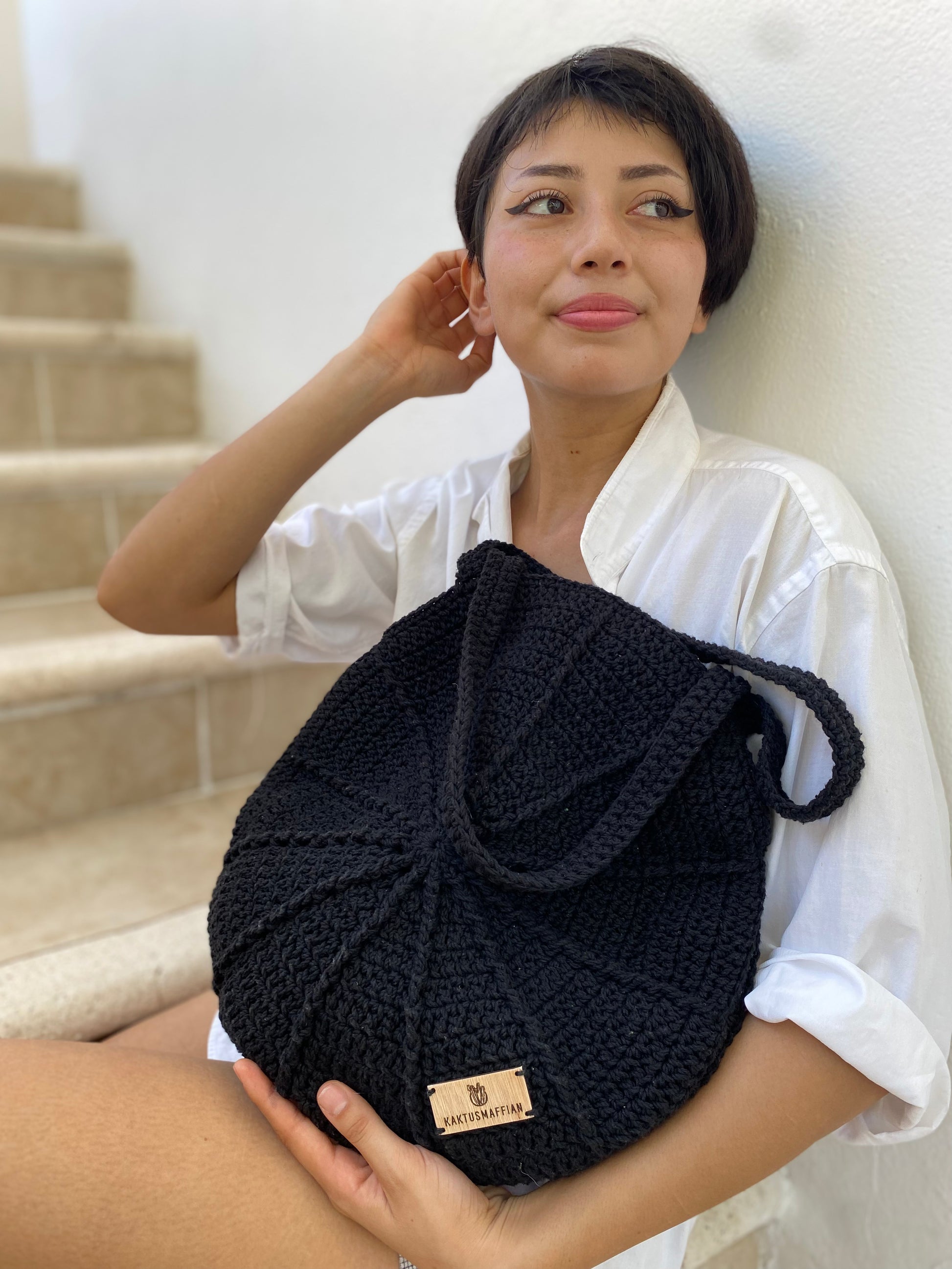 This darling Lu bag, a round bag that becomes the shape of a drop while using it.